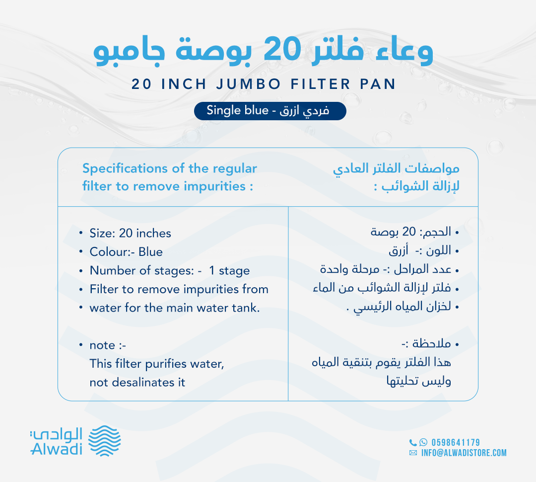وعاء فلتر 20 بوصة جامبو فردي ازرق