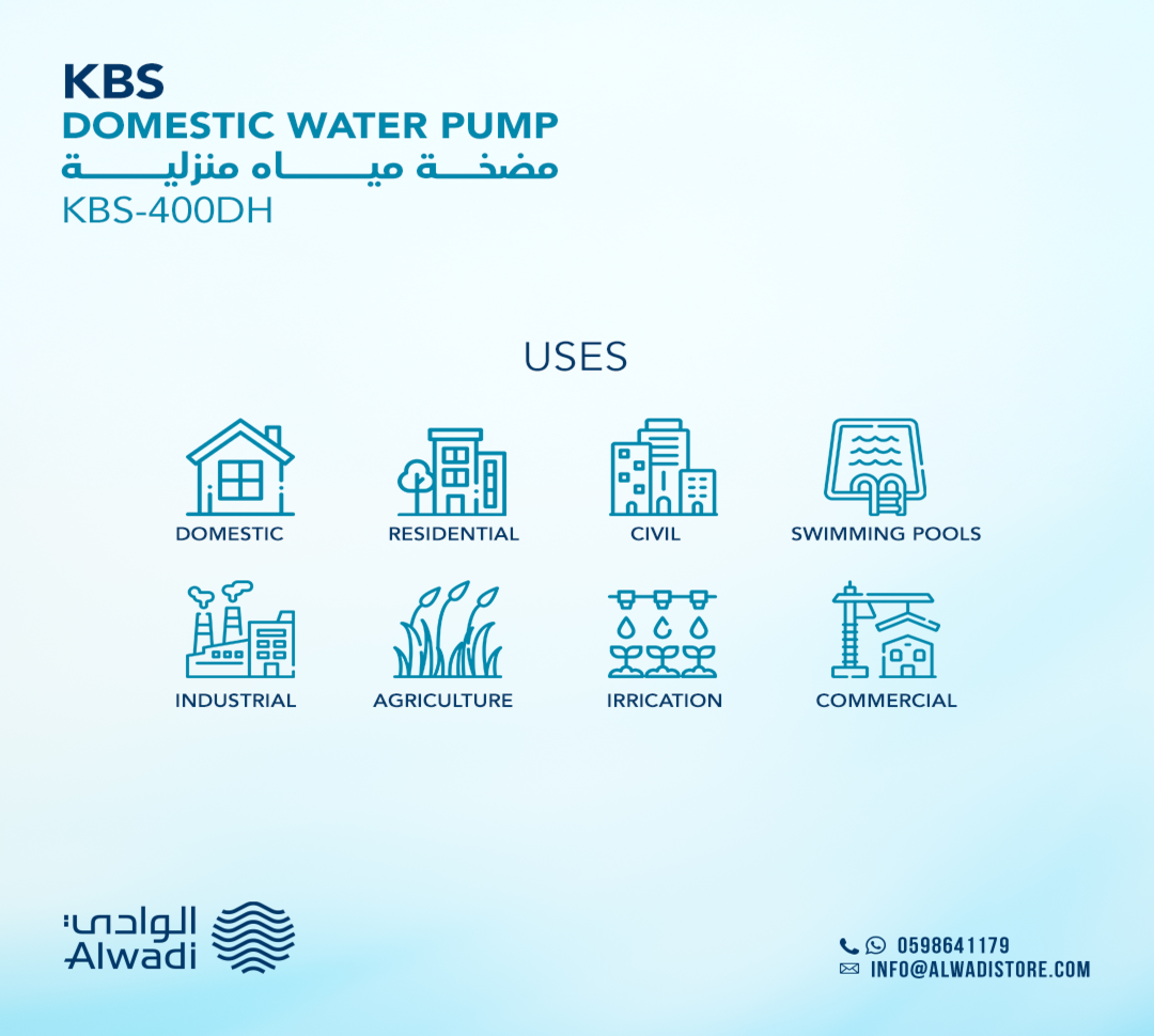 • الوسوم: مضخة مياه منزلية نصف حصان لتطبيقات المياه المنزلية, مضخة مياه نصف حصان لتزويد المنزل بالمياه, مضخة مياه للاستخدام المنزلي بقدرة نصف حصان, مضخة مياه منزلية kbs 400dh بقدرة نصف حصان